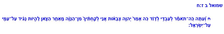 Further, say this to My servant David: Thus said the LORD of Hosts: I took you from the pasture, from following the flock, to be ruler of My people Israel.