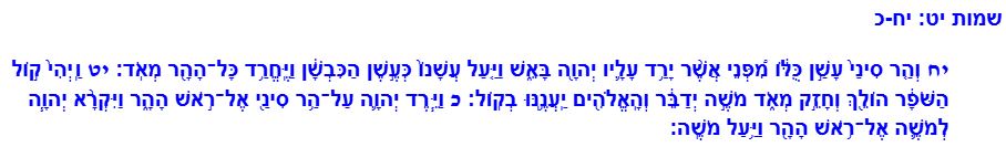 Now Mount Sinai was all in smoke, for GOD had come down upon it in fire; the smoke rose like the smoke of a kiln, and the whole mountain trembled violently. The blare of the horn grew louder and louder. As Moses spoke, God answered him in thunder. GOD came down upon Mount Sinai, on the top of the mountain, and GOD called Moses to the top of the mountain and Moses went up.