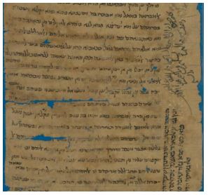 This manuscript piece is one of about 400,000 written fragments that were found in the Cairo Geniza. A Geniza is a storeroom for sacred Hebrew books that are no longer usable. Rather than toss or destroy old books and manuscripts containing Gods name, Jews traditionally put them in a Geniza or bury them in the ground out of respect.